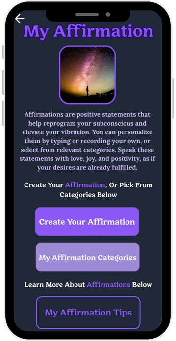 Write, record or choose from our categories your personal affirmations to help with any limiting beliefs